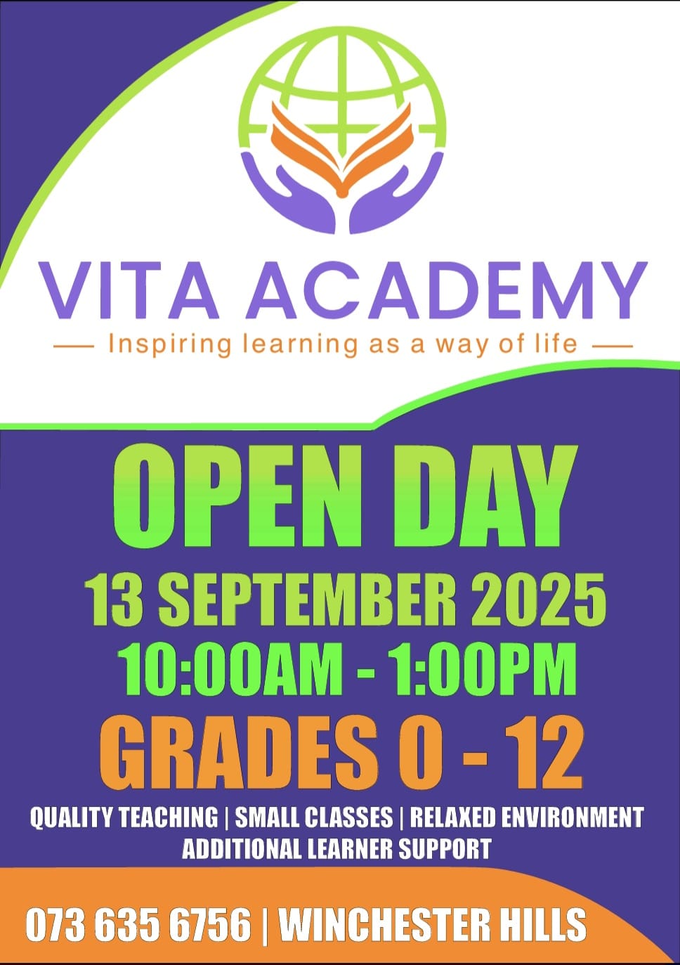 Vita Academy is an independent school in the South of Johannesburg. We provide education to learners with high standards. Our classes are small ensuring individual attention and additional learner support is available should learners require it.